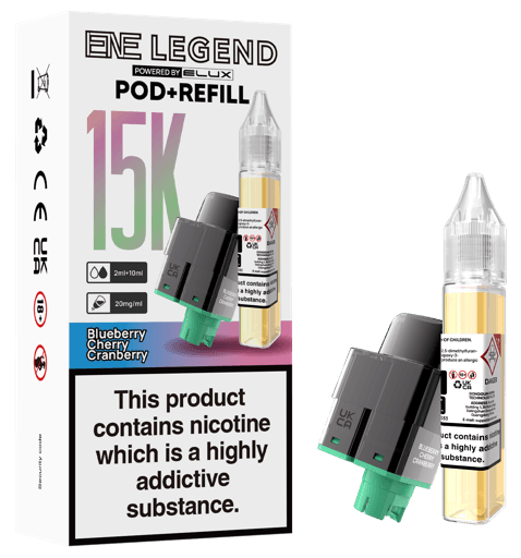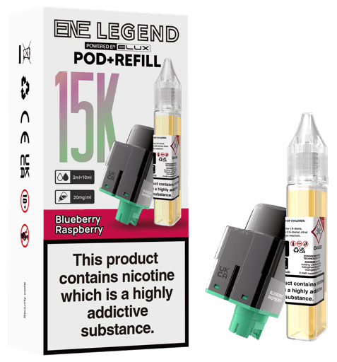 Refilling is easy thanks to the clip-and-connect design, making pod changes quick and mess-free. With 20 flavours available across fruit, ice, and soda blends, the Elux ENE Legend 15K is a reliable choice for vapers who want convenience, flavour, and longer-lasting enjoyment in one compact device.