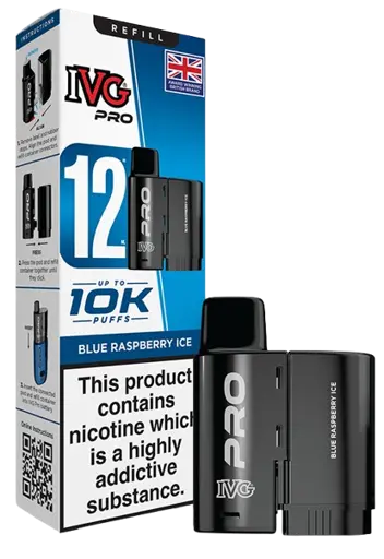 The IVG Pro 12 Prefilled Pod Vape Kit is a powerful and reusable alternative to single-use vapes, designed for simplicity, flavour and long-lasting performance. Built with a high-capacity 1000mAh rechargeable battery, this sleek device delivers up to 10,000 puffs thanks to its unique system: a 2ml prefilled pod paired with a built-in 10ml refill container and are compatible with the IVG Pro 12 Refill pods. Each pod is filled with IVG’s award-winning 20mg nic salt e-liquid, ensuring a smooth MTL vape and satisfying throat hit.